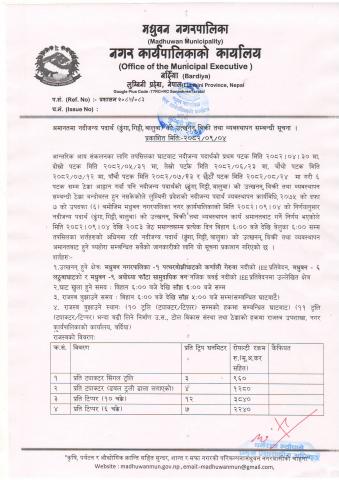 मधुवन नगरपालिकाको सल्लाहकार तथा परामर्शदाता नियुक्ति सम्बन्धी कार्यविधि,२०८२ ।।