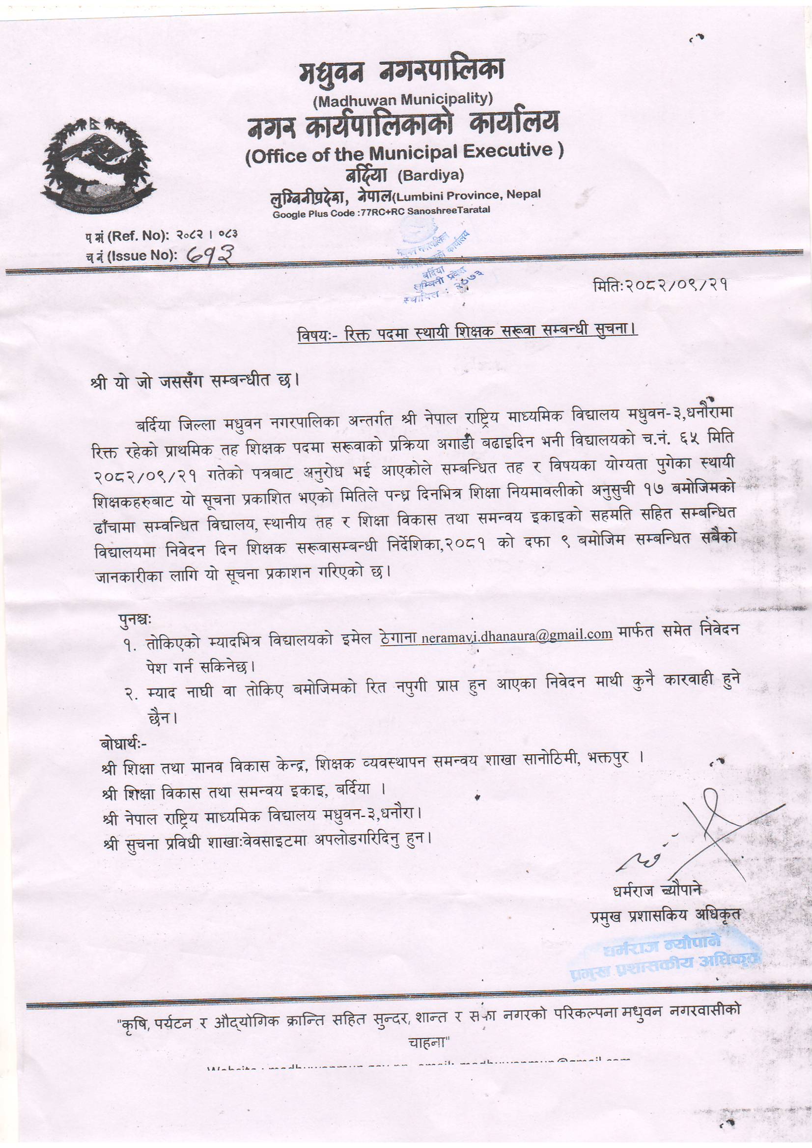 मधुवन नगरपालिकाको सल्लाहकार तथा परामर्शदाता नियुक्ति सम्बन्धी कार्यविधि,२०८२ ।।