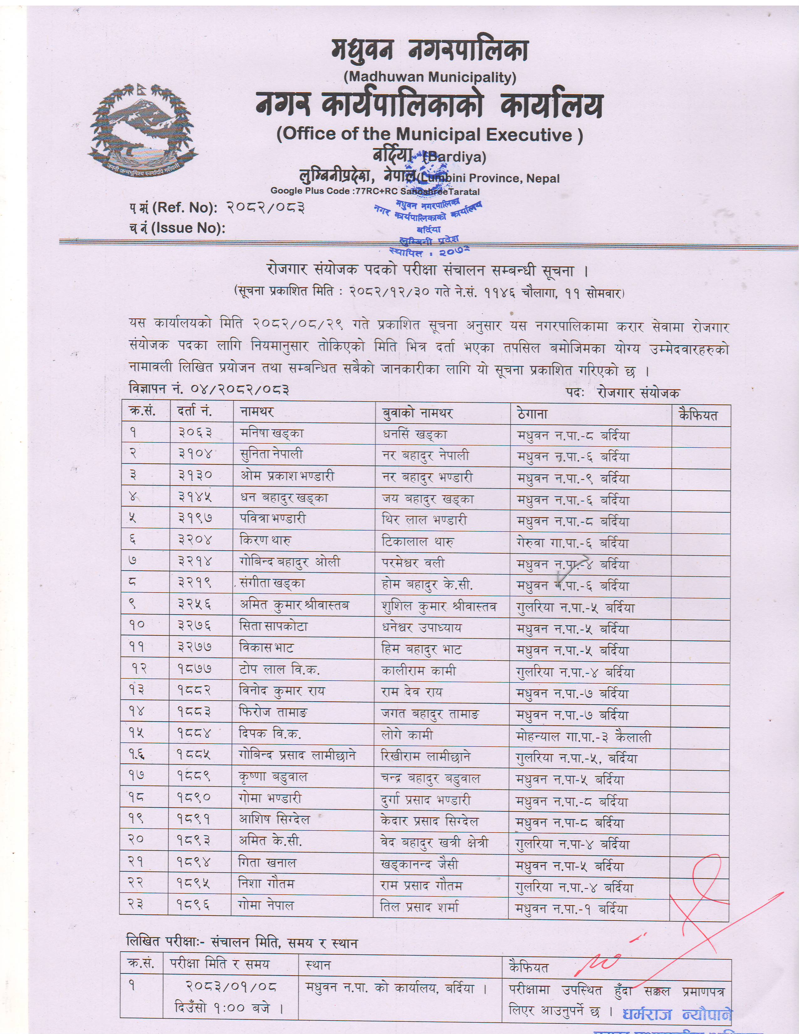 » रोजगार संयोजक पदको परीक्षा सञ्चालन सम्बन्धी सूचना ।।