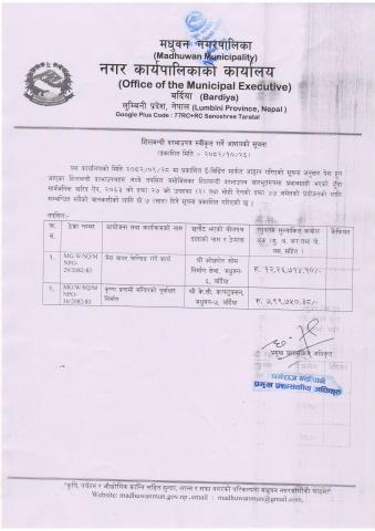 बोलपत्र स्वीकृत गर्ने आशयको सूचना ।।।।