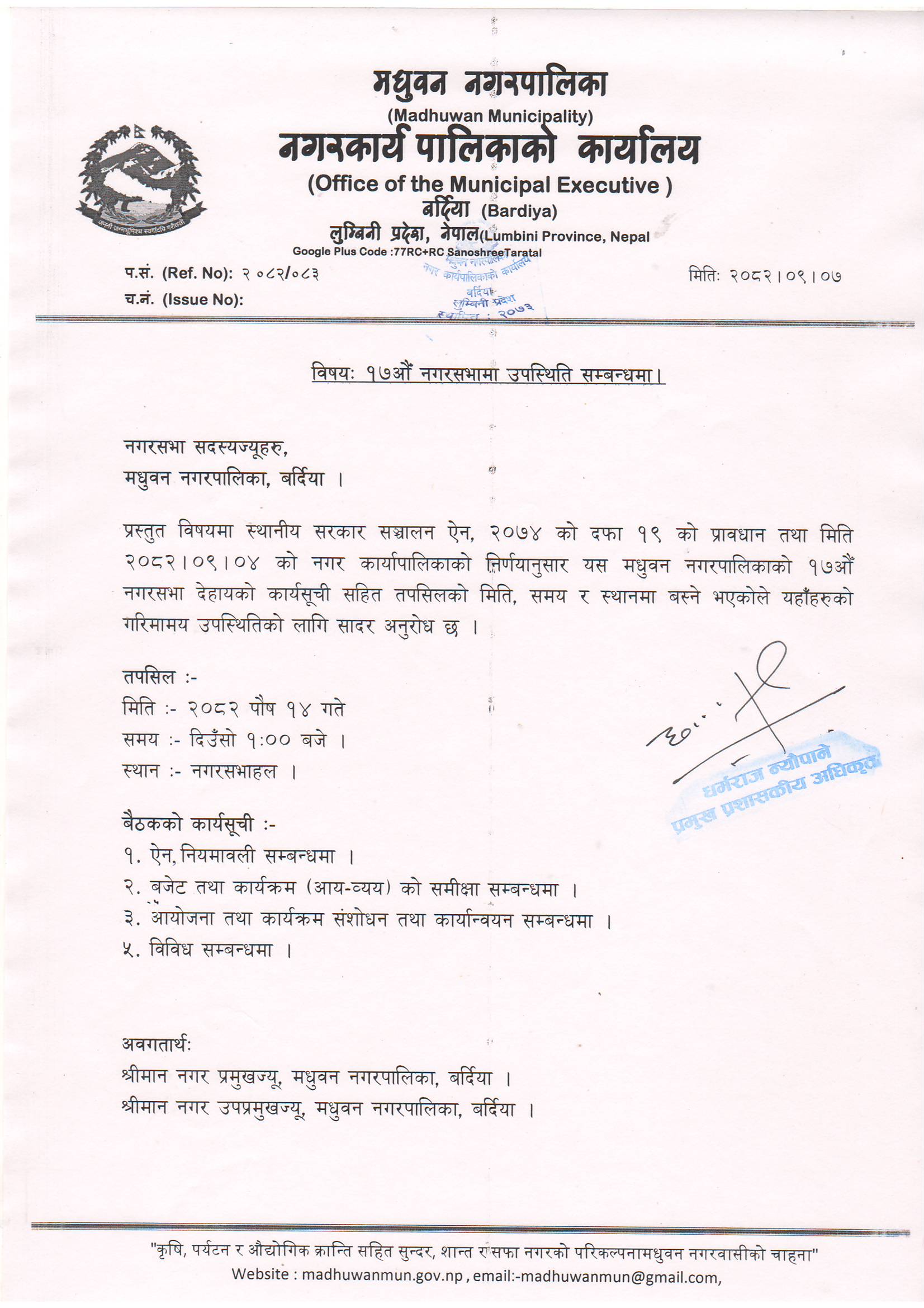 १७औँ नगरसभामा उपस्थिति सम्बन्धमा ।।।।