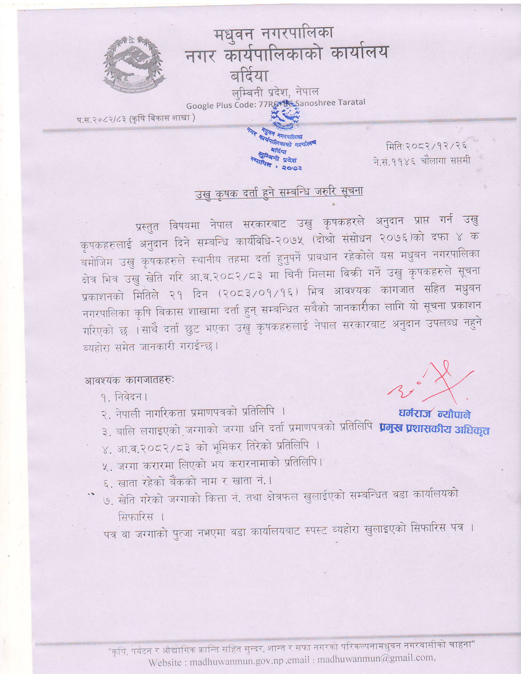 उखु कृषक दर्ता हुने सम्बन्धी जरुरी सूचना ।।।