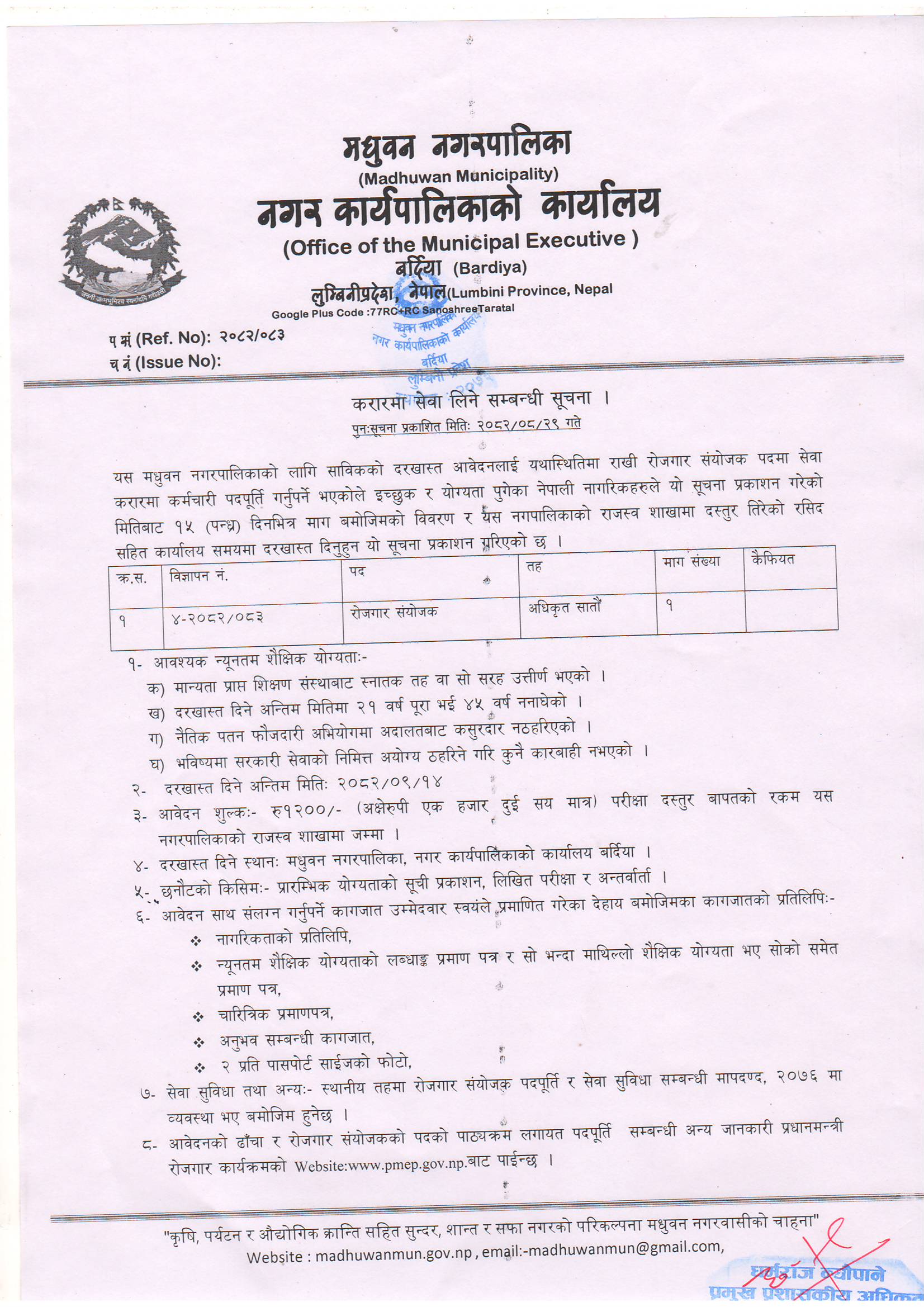 मधुवन नगरपालिकाको सल्लाहकार तथा परामर्शदाता नियुक्ति सम्बन्धी कार्यविधि,२०८२ ।।