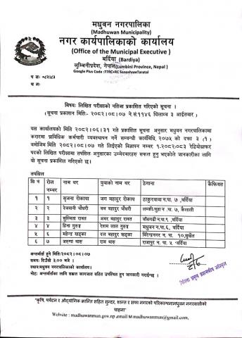 लिखित परीक्षाको नतिजा प्रकाशित गरिएको सुचना ।।।