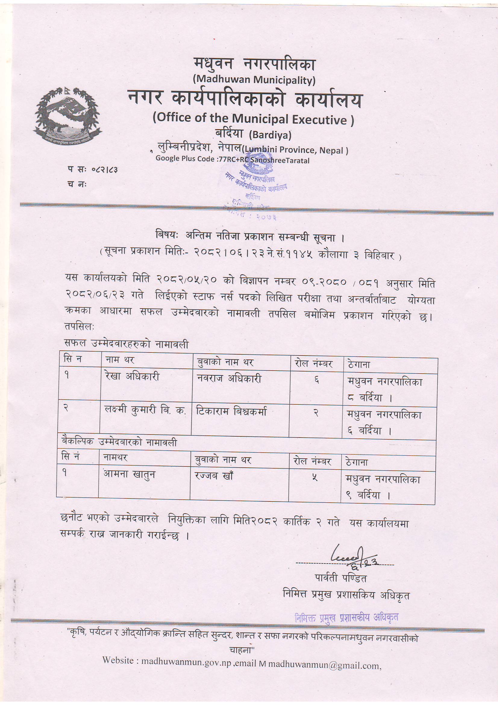 » अन्तिम नतिजा प्रकाशन सम्बन्धी सूचना ।।।