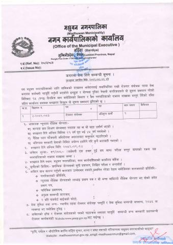 दरभाउपत्र स्वीकृत गर्ने आशयको सूचना ।।।।