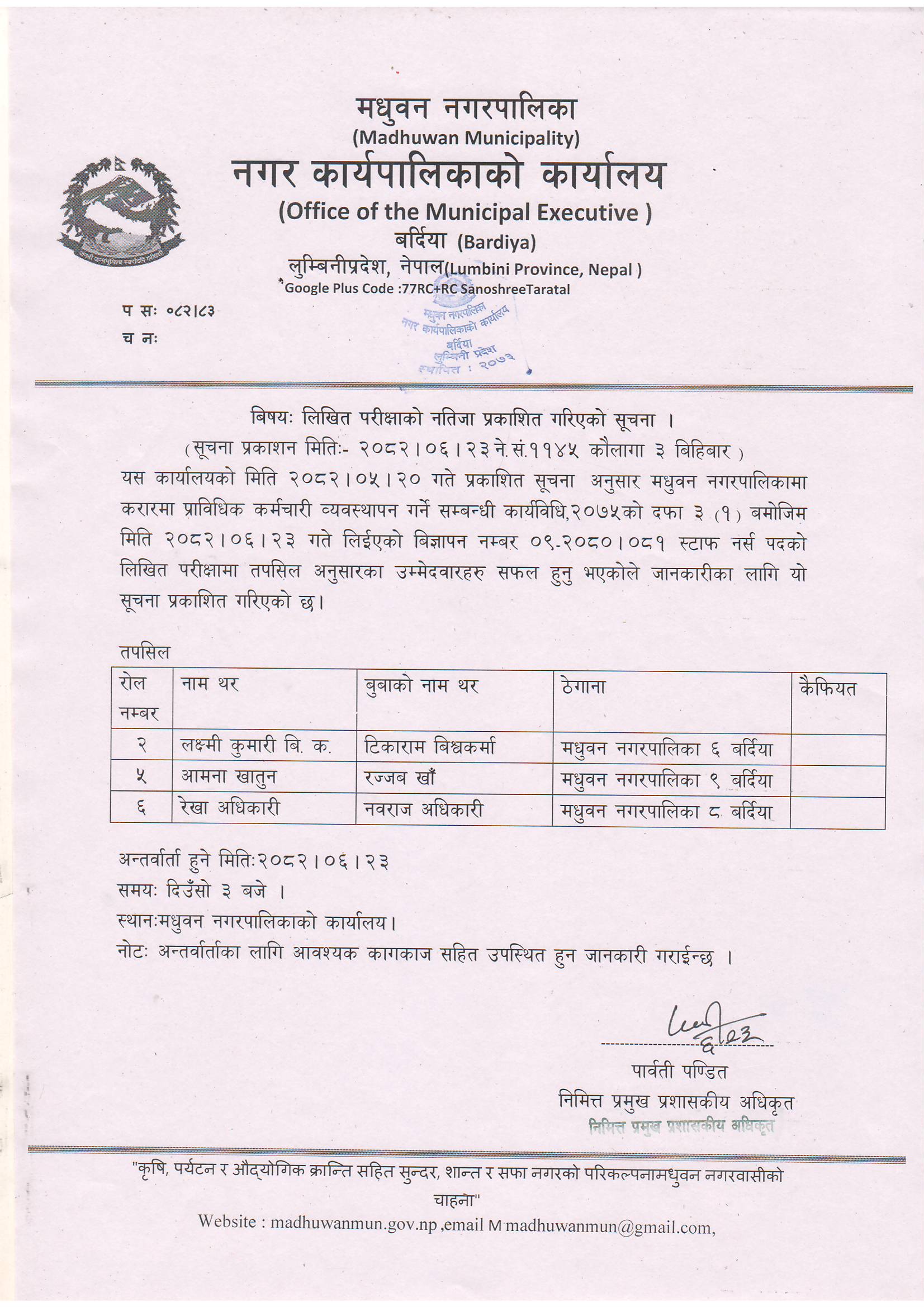 » लिखित परीक्षाको नतिजा प्रकाशन गरिएको सूचना ।।।