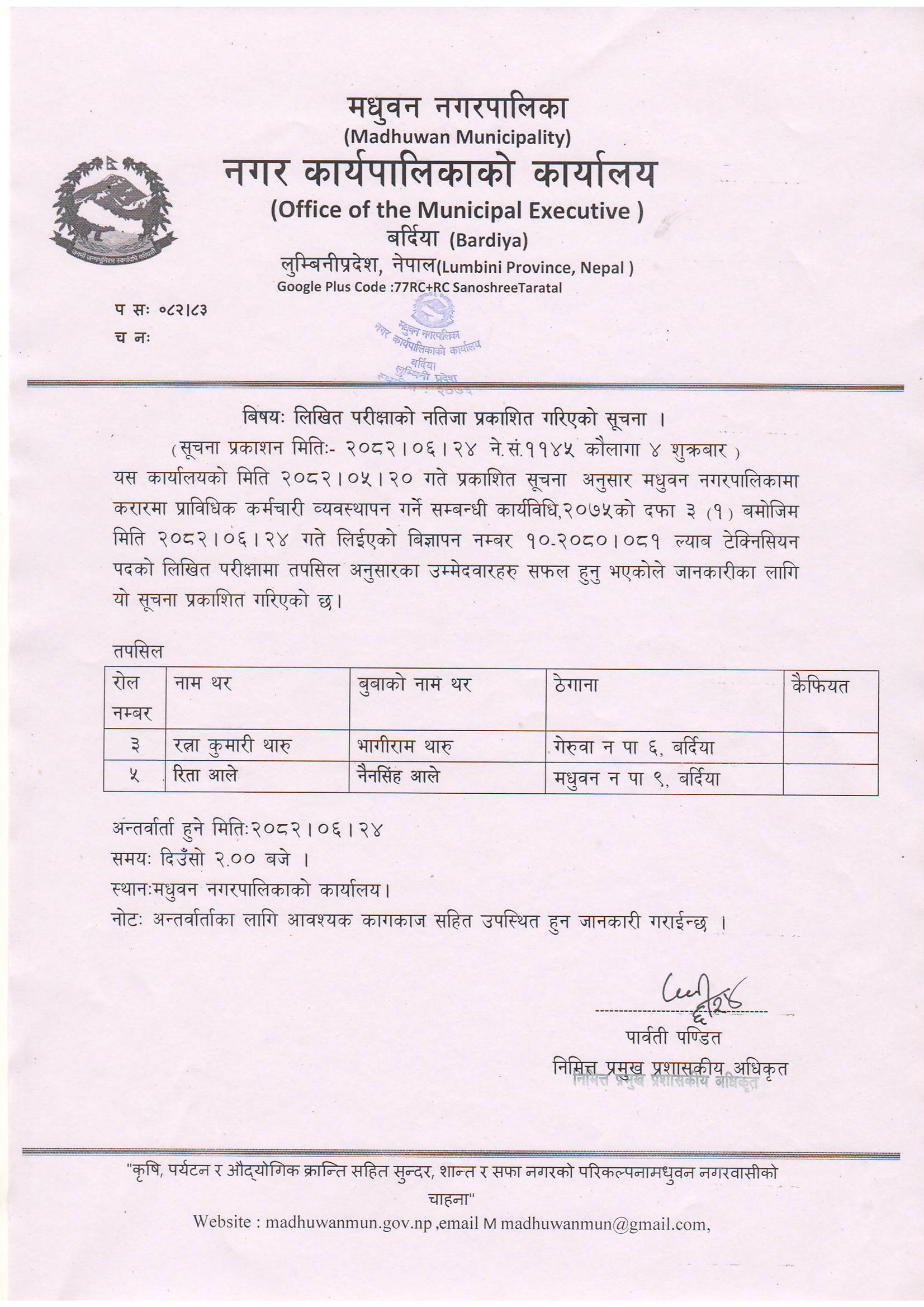 लिखित परीक्षाको नतिजा प्रकाशित गरिएको सूचना