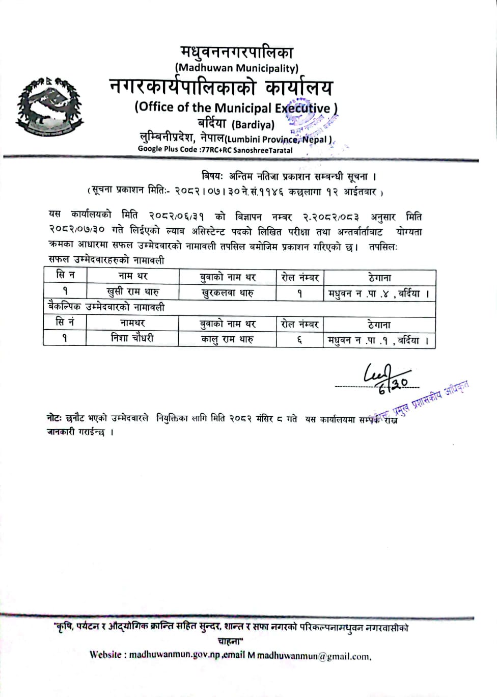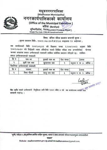 अन्तिम नतिजा प्रकाशन सम्बन्धी सूचना ।।।