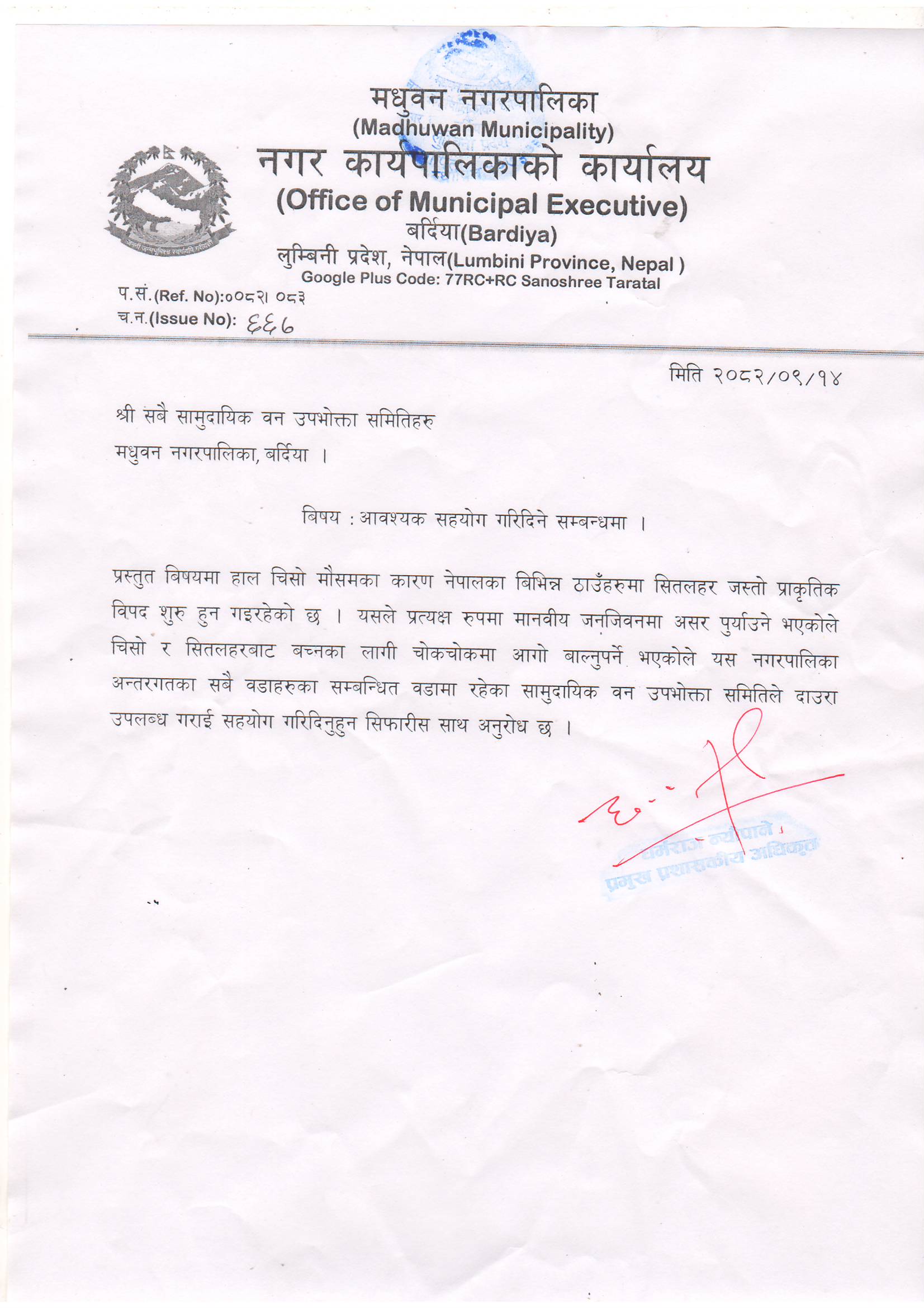 » आवश्यक सहयोग गरिदिने सम्बन्धमा ।।।