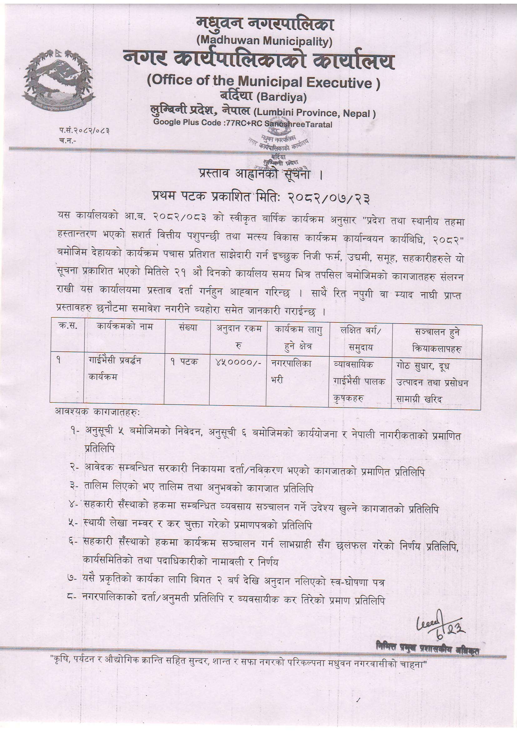 मधुवन नगरपालिका भएर बग्ने कर्णाली गेरुवा र बबई नदीबाट नदीजन्य पदार्थको उत्खनन्/संकलन र बिक्रीवितरण सम्बन्धी टेण्डर/ विद्युतिय बोलपत्र (E-Bid) आह्वानको सूचना ।।।