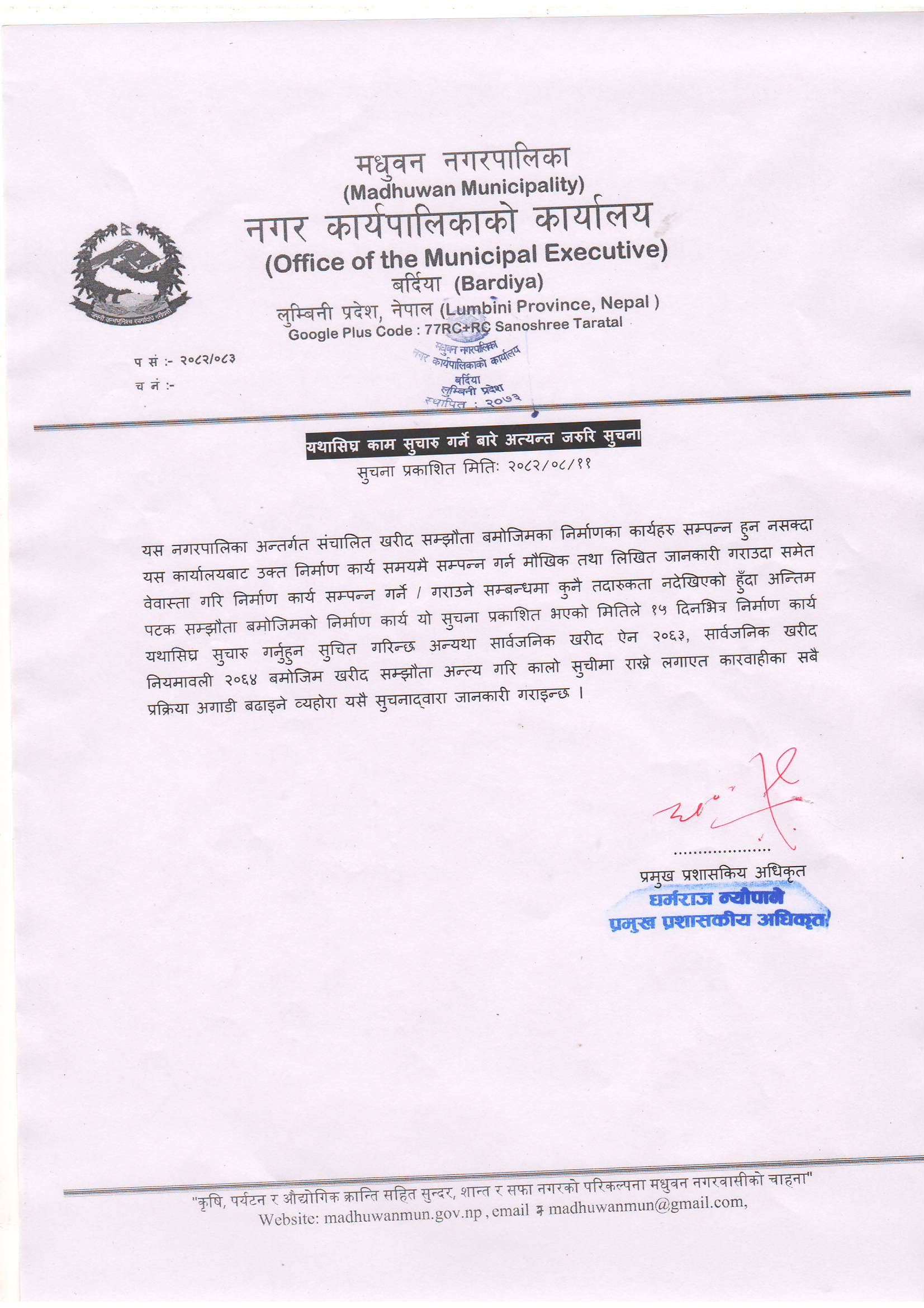 यथासिघ्र काम सुचारु गर्ने बारे अत्यन्त जरुरी सूचना ।।।।