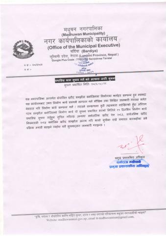 मधुवन नगरपालिकाको सल्लाहकार तथा परामर्शदाता नियुक्ति सम्बन्धी कार्यविधि,२०८२ ।।