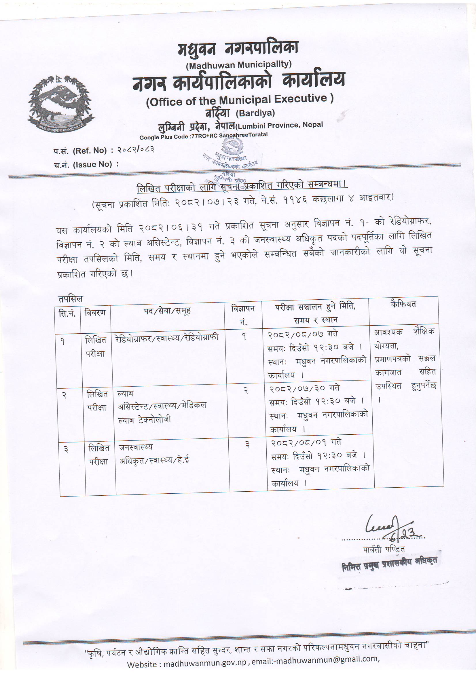 » लिखित परीक्षाको लागि सूचना प्रकाशित गरिएको सम्बन्धमा ।।।