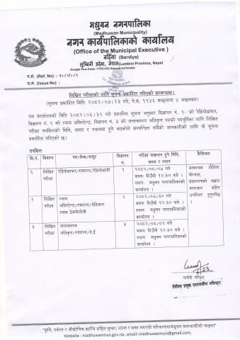 लिखित परीक्षाको लागि सूचना प्रकाशित गरिएको सम्बन्धमा ।।।