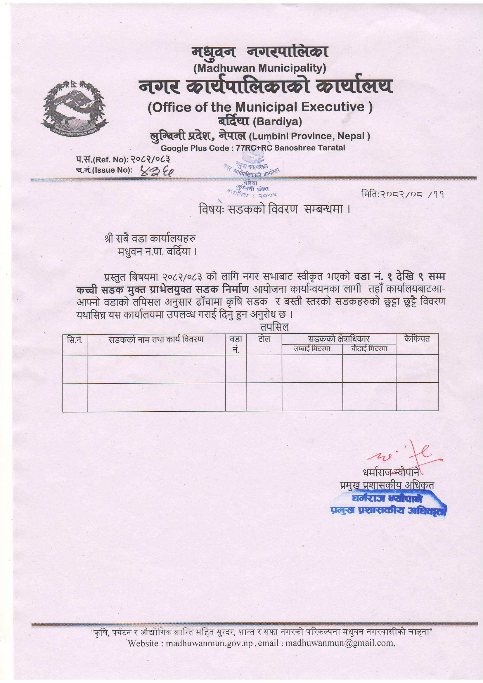 मधुवन नगरपालिकाको सल्लाहकार तथा परामर्शदाता नियुक्ति सम्बन्धी कार्यविधि,२०८२ ।।