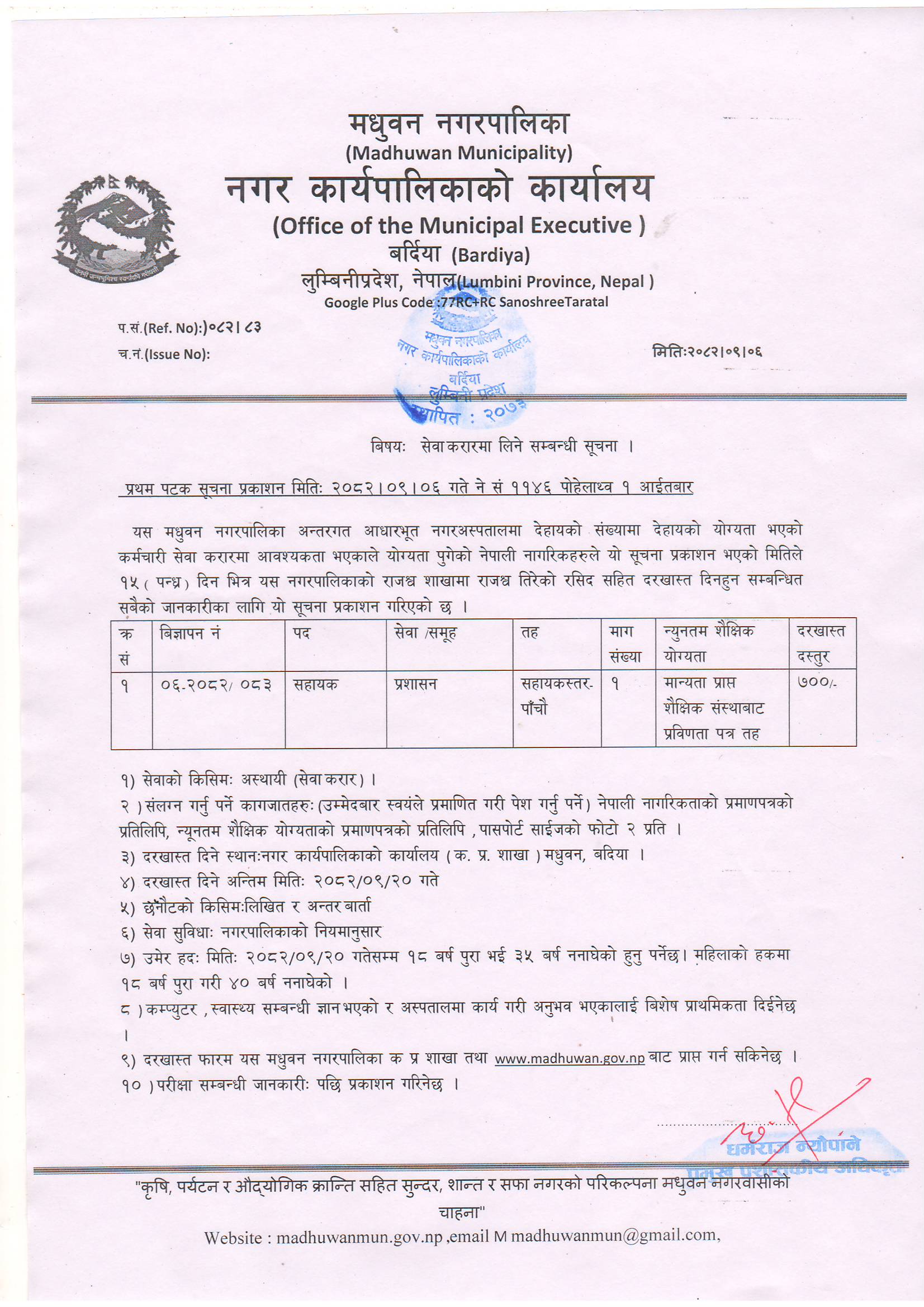 मधुवन नगरपालिकाको सल्लाहकार तथा परामर्शदाता नियुक्ति सम्बन्धी कार्यविधि,२०८२ ।।